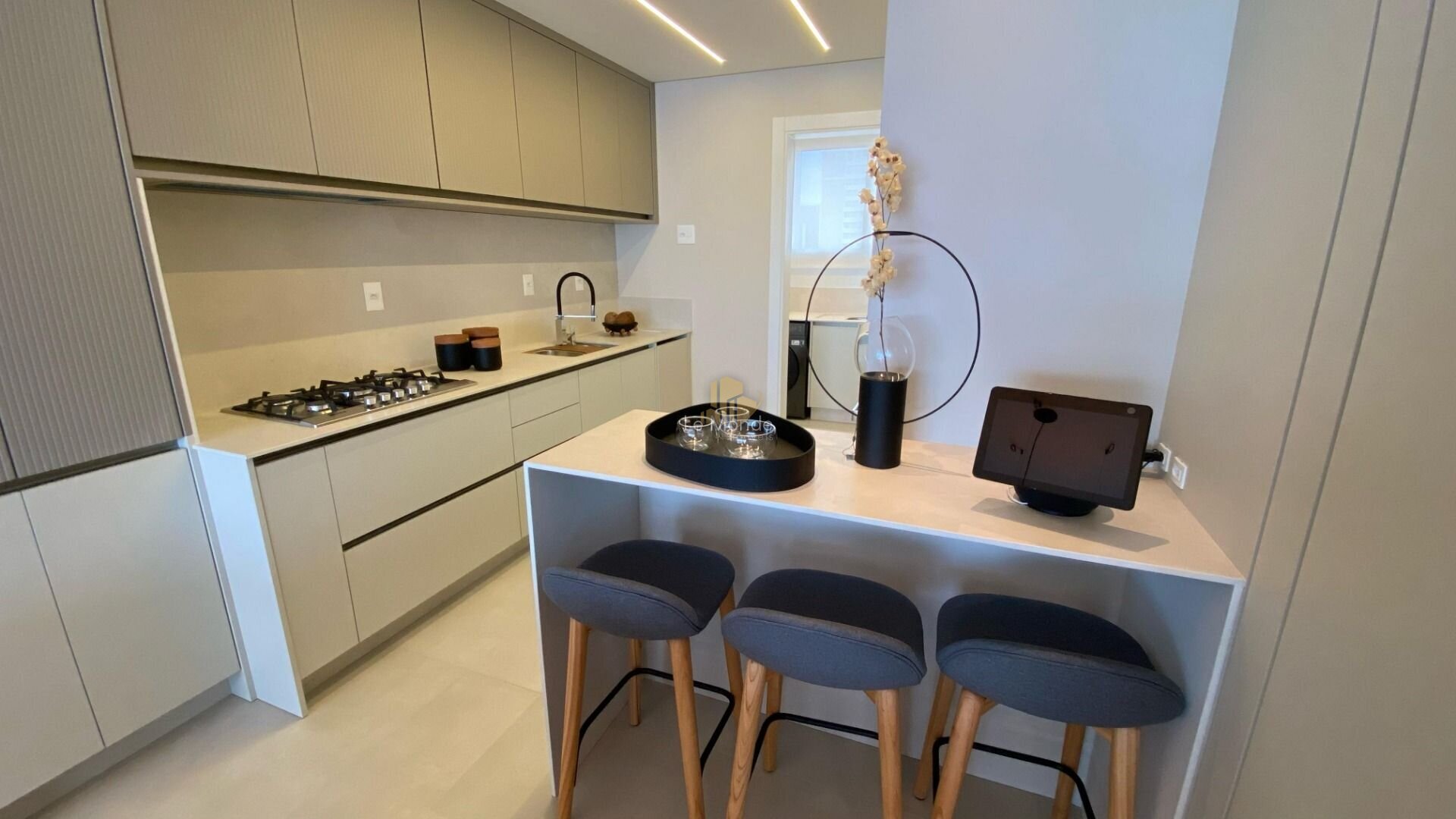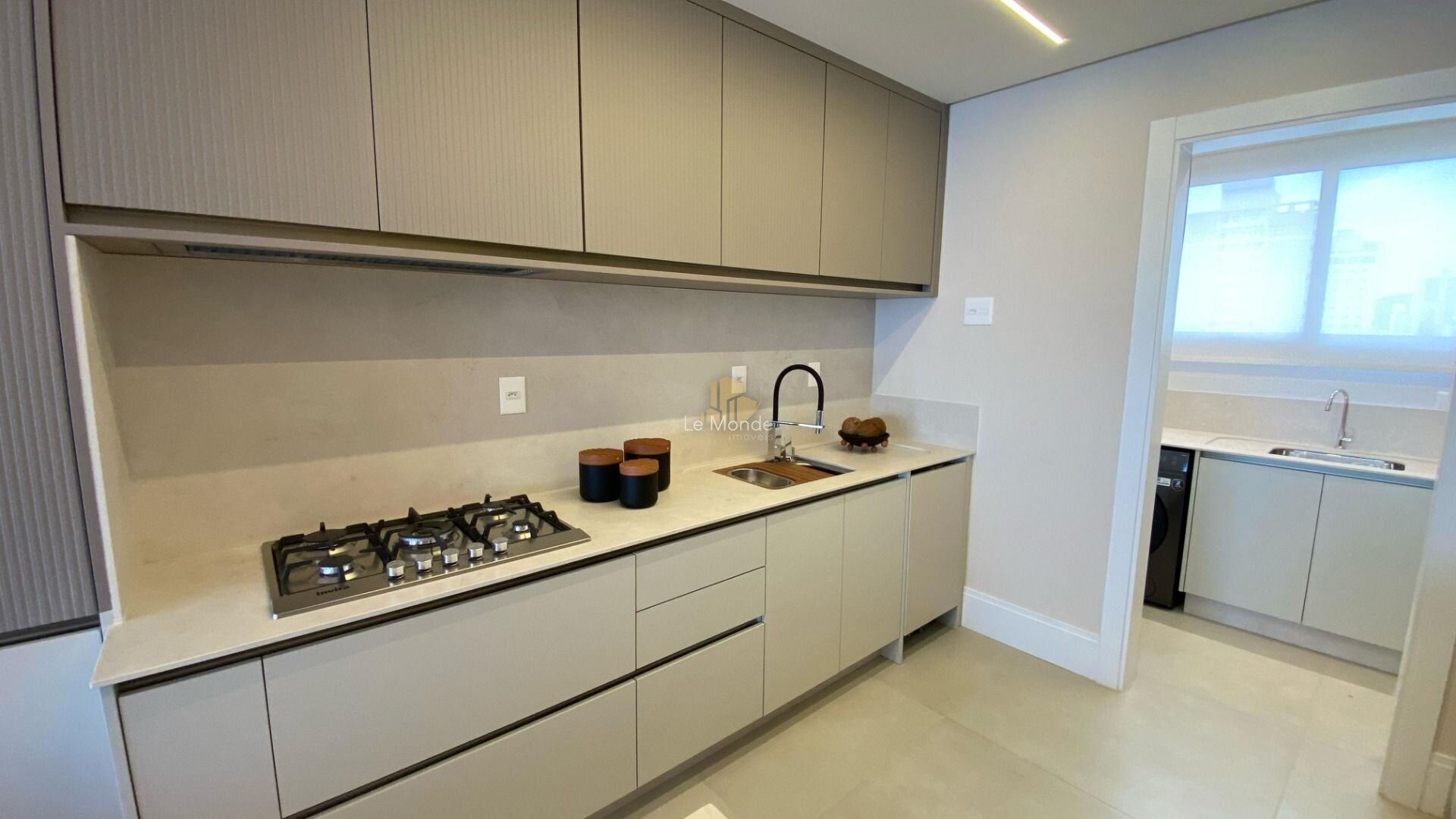 * Living integrado com sala de estar, jantar e cozinha;