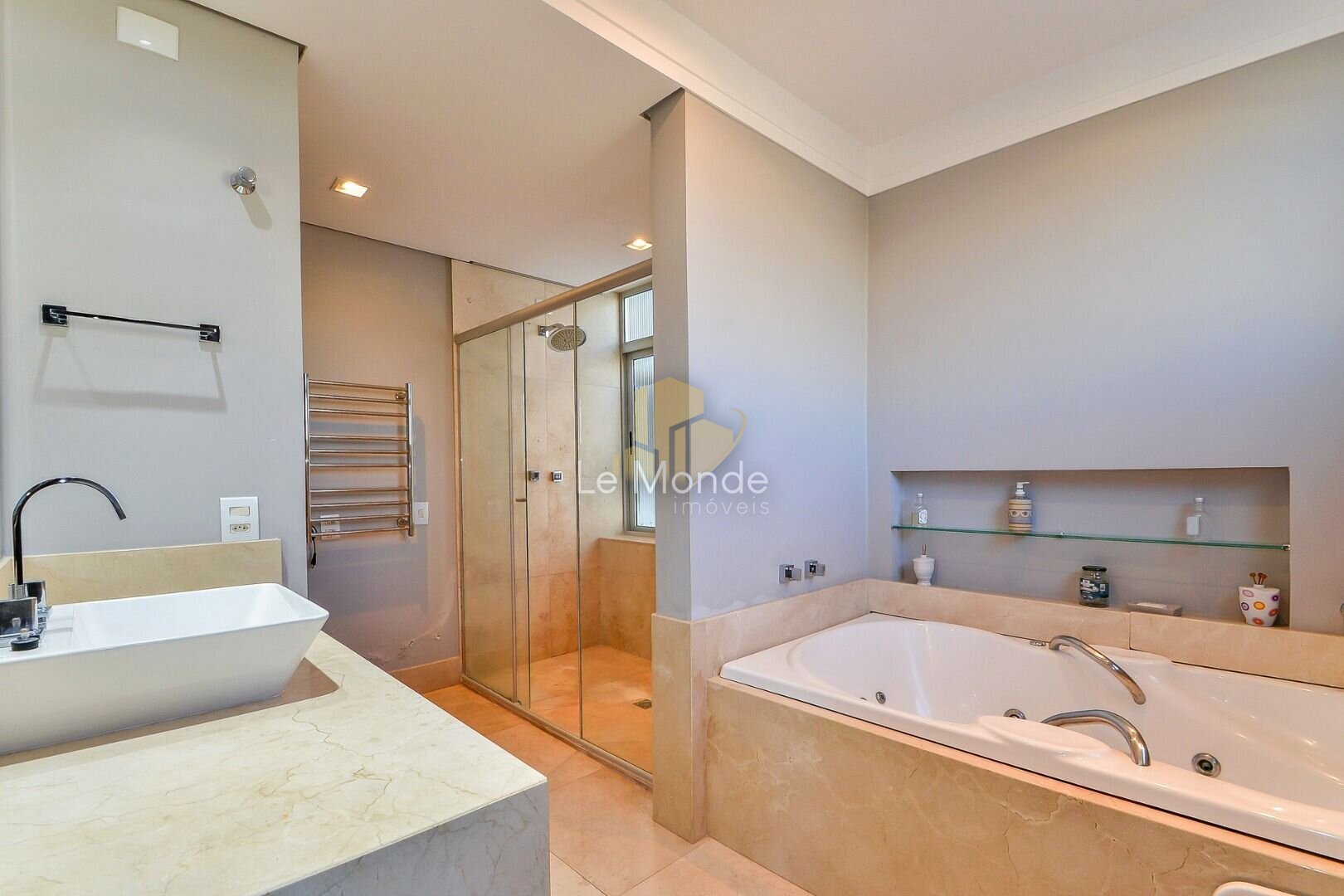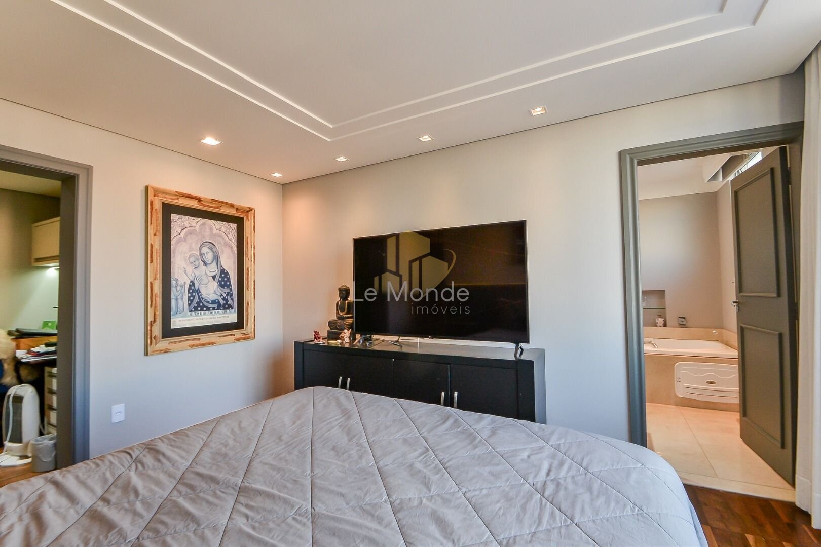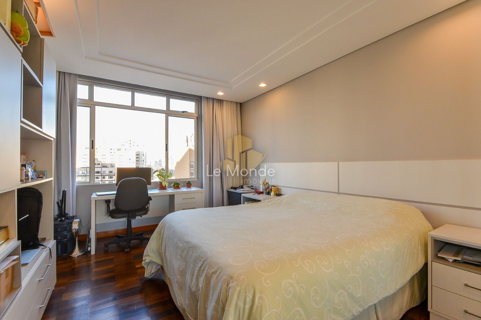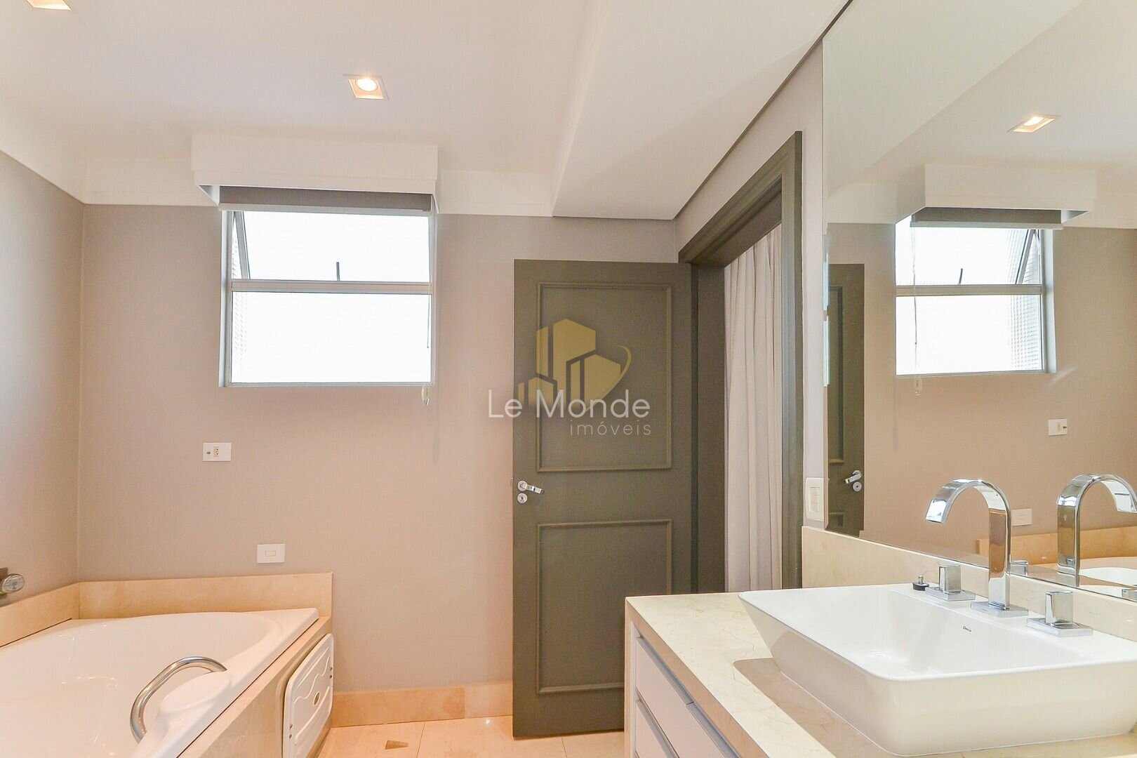 - Suíte ampla com bastante entrada de luz natural, com armários planejados, banheira, closet e escritório;