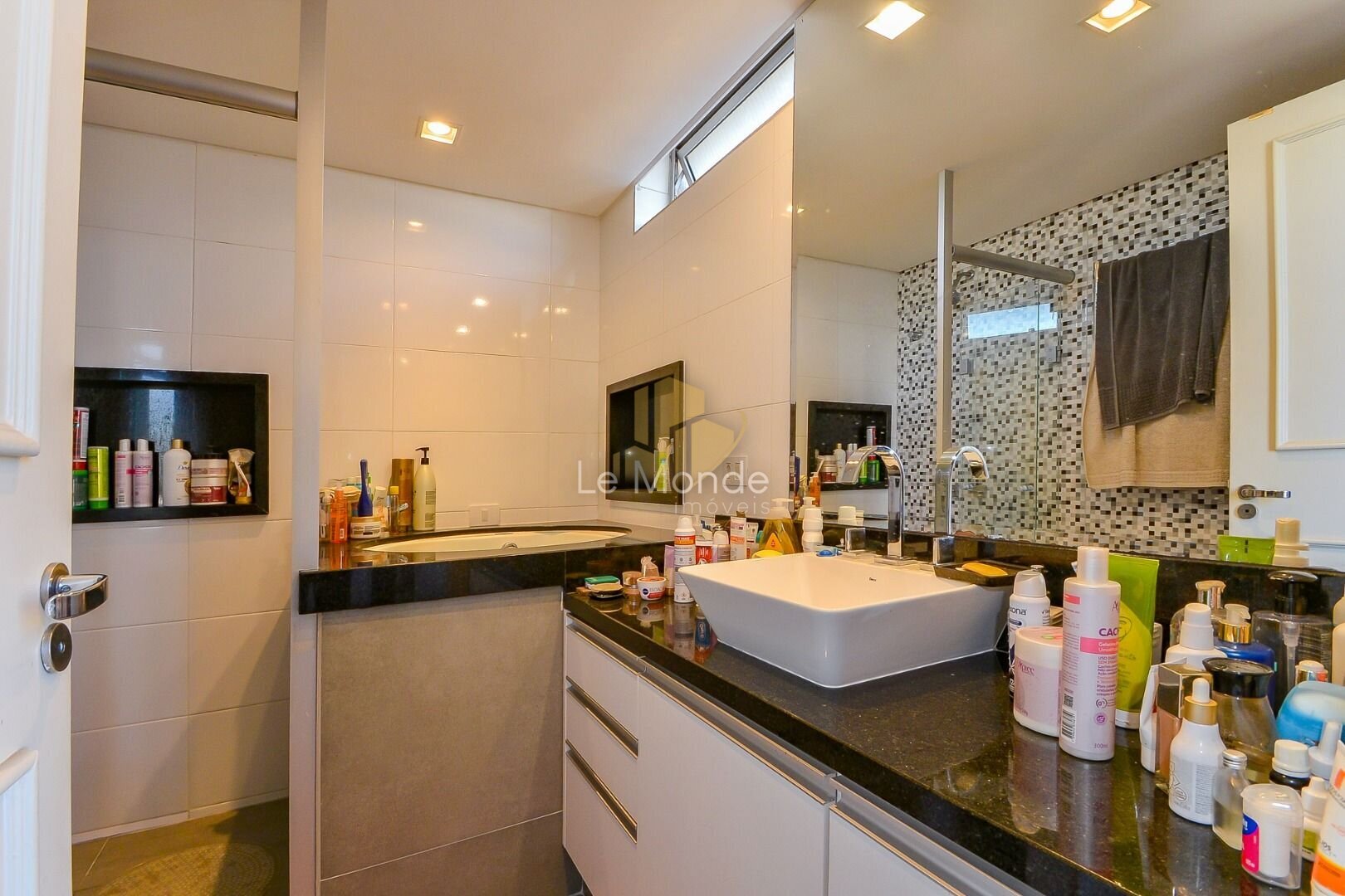- 1 lavabo com bancada em mármore preto;