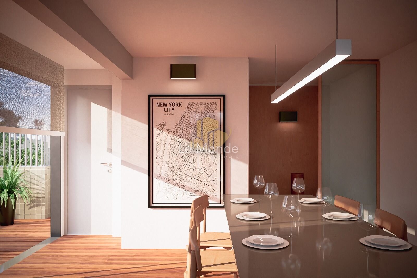 - Sala de estar e jantar integradas, com sacada;