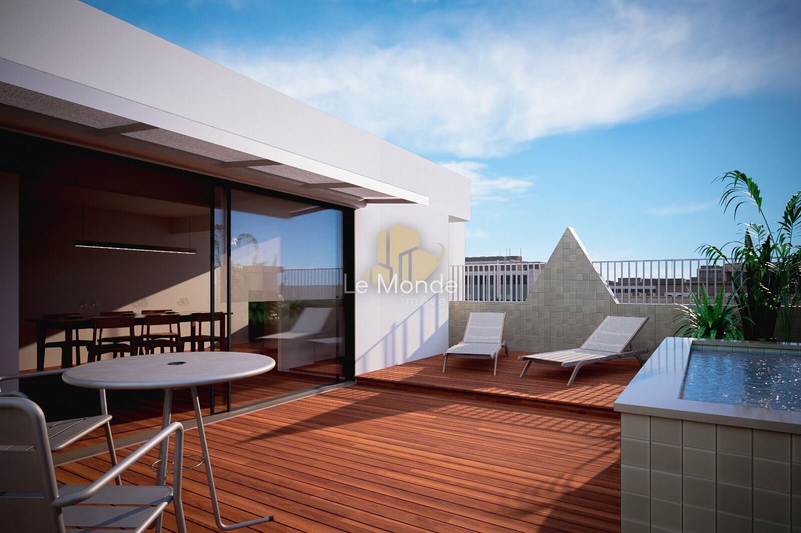 - Terraço amplo com infraestrutura preparada para ofurô, necessitando apenas da definição do tamanho da banheira;