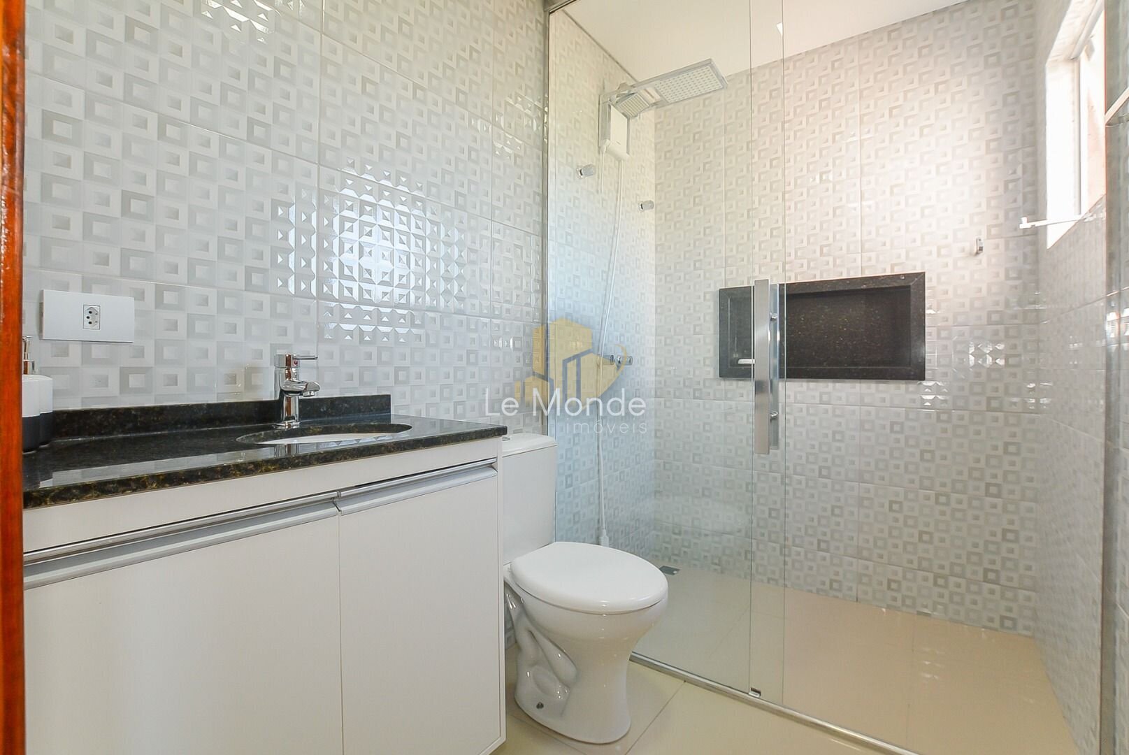 - Banheiros com armários tampo em granito e box blindex, e chuveiro.